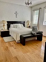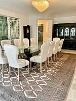 4 RECAMARAS MUY AMPLIAS CON BAÑO CADA UNA Y DOS RECAMARAS CON VESTIDOR,, DOBLE SALA , ANTECOMEDOR, COCINA INTEGRAL CON ALACENAS , DESPACHO CON MUEBLES DE CAOBA , 1/2 BAÑO VISITAS, BAR ESPECTACULAR, TERRAZA DE 20 MTS CON ASADOR Y BAR, CUARTO DE LAVADO Y CUARTO DE SERVICIO AMPLIO CON BAÑO , BAÑO PARA CHOFER, 7 AUTOS, AREAS VERDES (ACABADOS EN MADERA Y MARMOL) PREVIA CITA